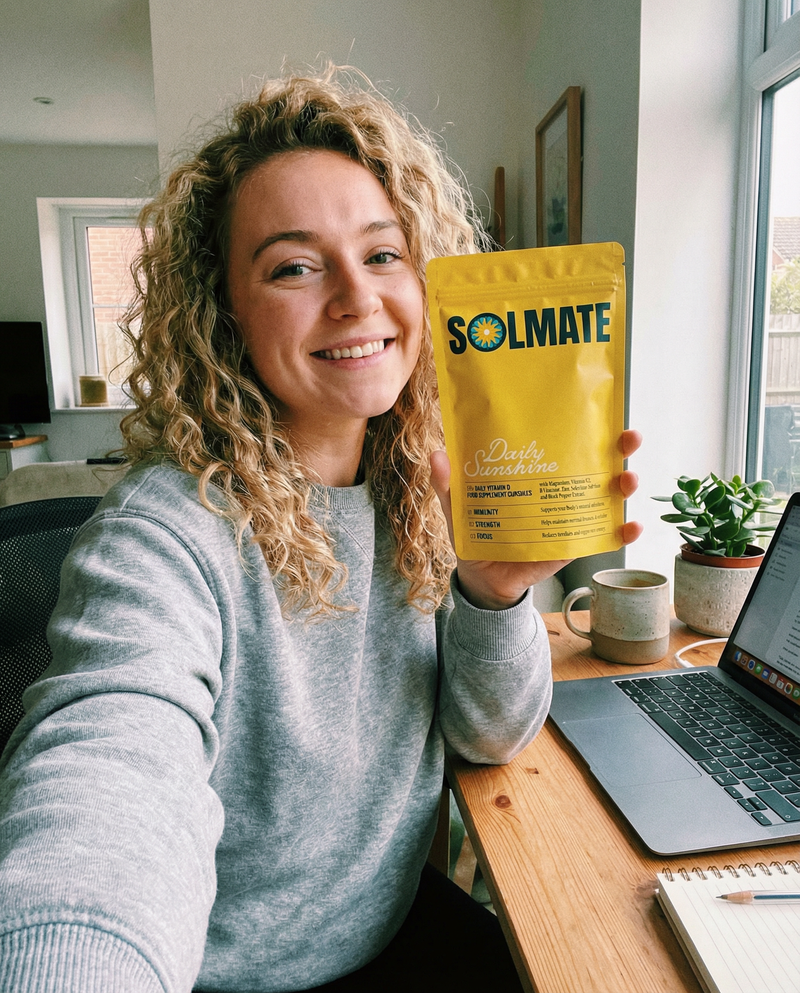 "“Working from home all winter, I really noticed the difference — more energy, better mood, less of that grey-day slump. Solmate’s my little bit of sunshine next to the laptop.”"